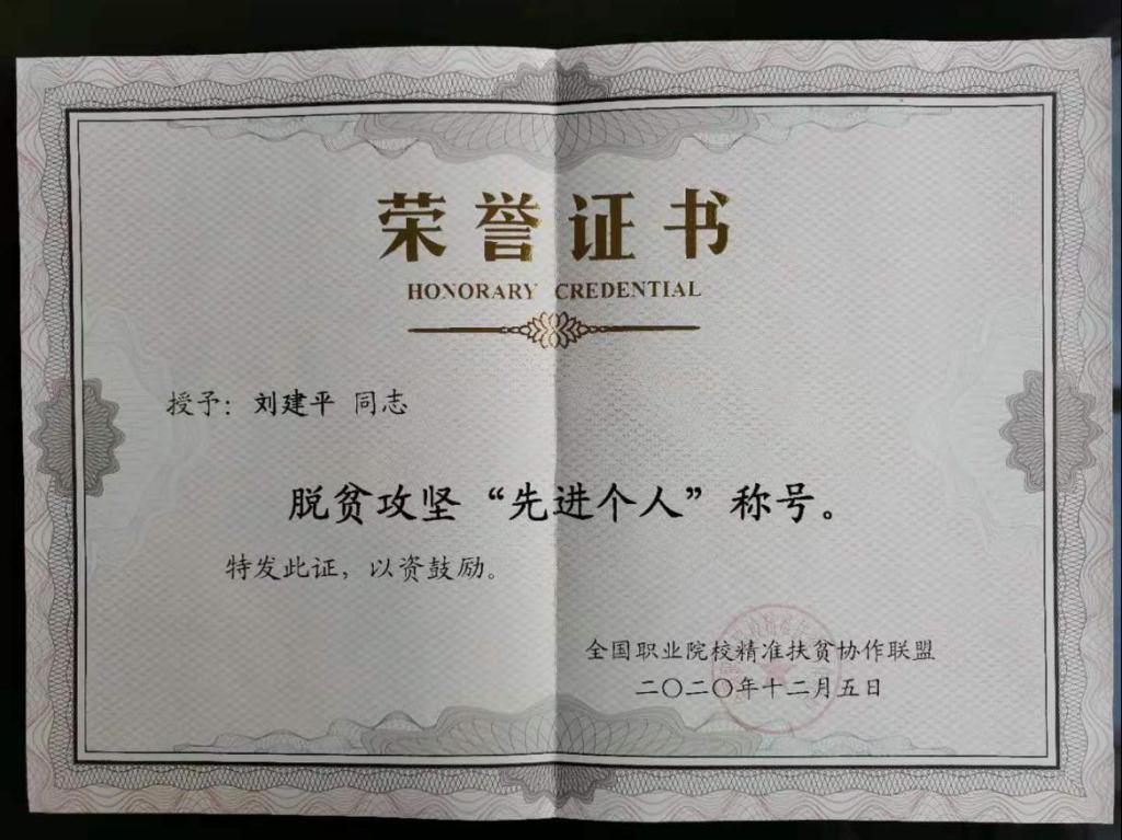 必赢教师被评为全国职业院校精准扶贫协作联盟脱贫攻坚先进个人