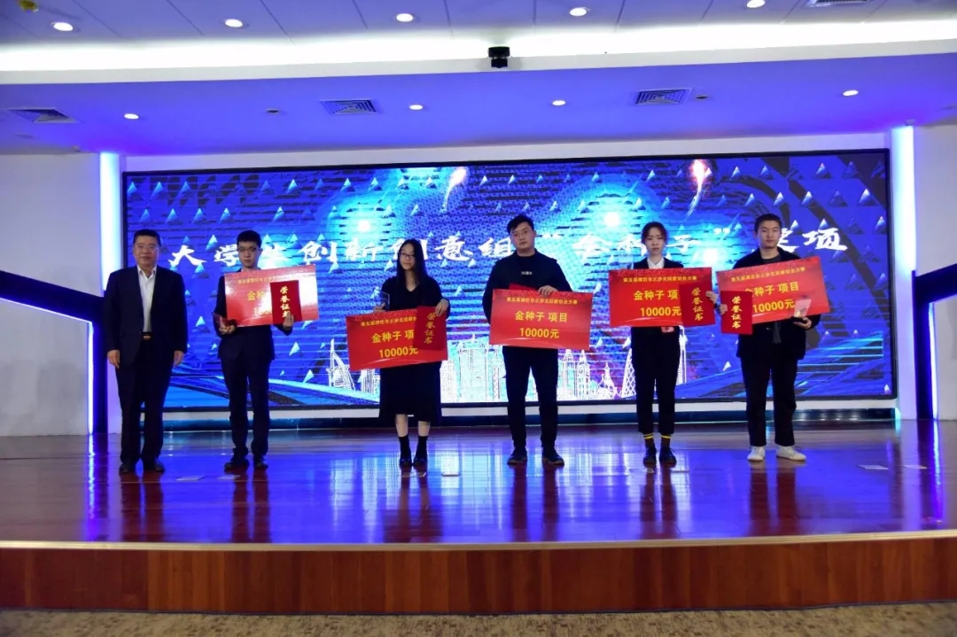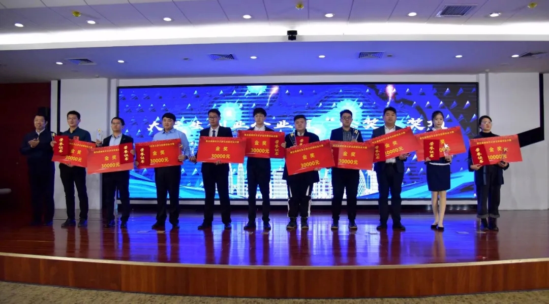 本届潍坊市大学生创新创业大赛自5月份启动以来,共吸引了10余所驻潍高校硕士、本科、高职及大学生创业者的400余个项目报名参赛。经过初赛选拔、复赛竞技,选拔出各类优质大学生创新创业项目200个进入半决赛。半决赛通过组织专家“盲审”确定45个项目进入决赛,必赢7个项目入围决赛,其中创新创意组4个、创业企业组3个。经过现场路演、答辩,化学工程学院王敏老师指导、项目负责人李芳盛的“泵站之眼-交互式智能预警监控系统”,文化创意学院柳静老师指导、项目负责人张可越的“精古战记”获得创新创意组金奖;机电工程学院辛海明老师指导、项目负责人孙凯的“亿爱智能科技(山东)有限公司”,汽车工程学院冯加锋老师指导、项目负责人王家璇的“潍坊市西木科技有限公司”获得企业创业组金奖。孙凯作为本届大赛金奖第一名接受了潍坊电视台的专题采访。