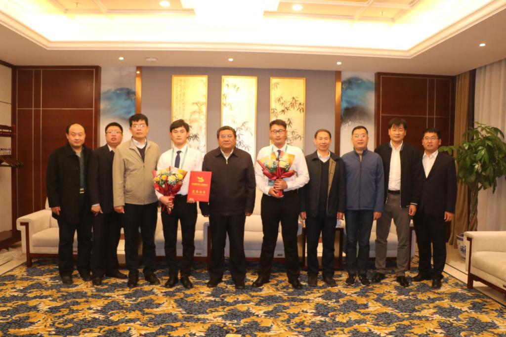 11月21日下午,必赢参加第六届中国国际互联网+大学生创新创业大赛国赛金奖项目团队载誉归来,学院院长王家爱、副院长李瑞昌、刘德强,办公室(统战部)主任(部长)任培华接见了获奖选手孙凯、刘月昊,并进行了座谈。创业教育学院、机电工程学院主要负责同志及团队领队、指导教师参加了座谈。