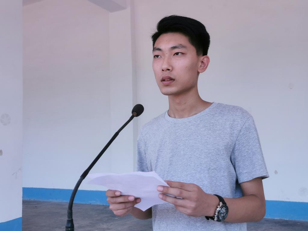 优秀辅导员代表作国旗下教育,号召同学们在成长中勇于亮出新时代青年人敢于担当的底色,为国家强盛而努力奋斗。要敢于担当,做一个有责任心的人;要成长成才,做一个有能力的人;要提倡节俭,做一个能吃苦耐劳的人;要自强不息,自信独立,执著追求自己的理想和目标,完成新时代赋予的社会主义接班人的神圣使命。
