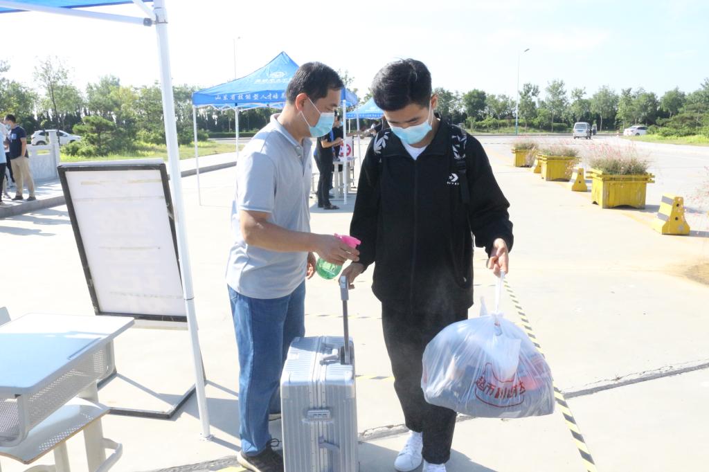 此次演练主要针对学生返校、入住公寓两个场所进行了全流程、全仿真多轮模拟演练。在返校报到入口,模拟演练乘私家车返校、乘公交车返校报到流程,对学生进行消杀消毒、体温检测、身份核验,重点演练了发现学生发热应急处置程序。在学生公寓,学生排队消毒、测量体温,通风入住,演练了学生自感身体不适应急处置流程。