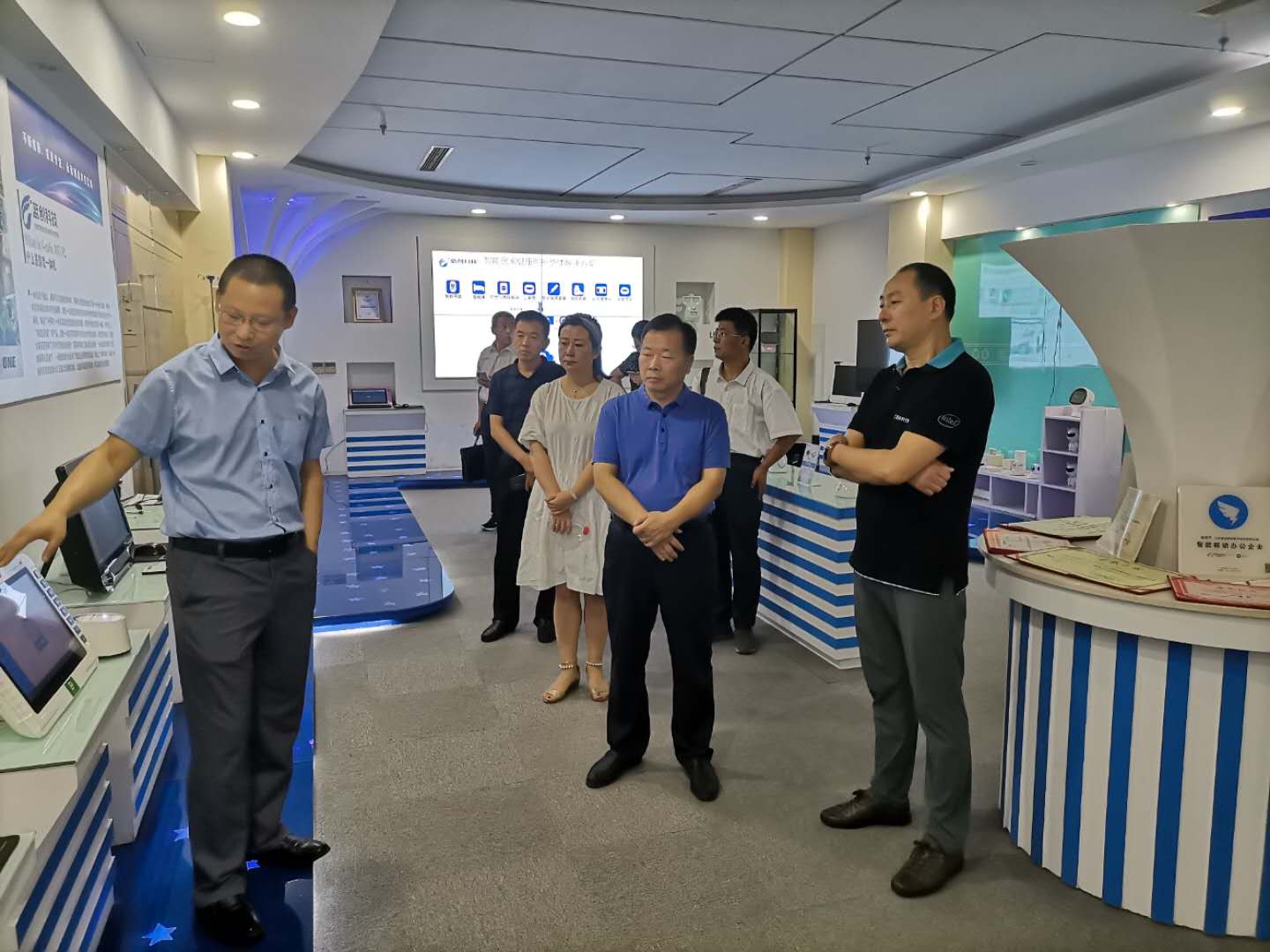 座谈交流前,贺志强一行参观了公司产品展室。(巨荣峰供稿)