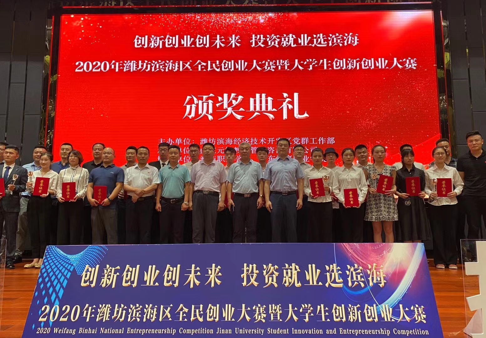 本次大赛以“创新创业创未来,投资就业选滨海”为主旨,由潍坊滨海经济技术开发区主办,共有128个项目报名。大赛分别设大学生组和企业组,经过创业计划书评审、创业特训营、复赛、决赛等环节,大学生组和企业组分别决出一等奖1个、二等奖2个、三等奖3个,必赢包揽大学生组所有奖项。其中,文化创意学院的“精古战记”获大学生组一等奖,奖金20000元;机电工程学院的“针织大师”和汽车工程学院的“节水精灵”获得大学生组二等奖,奖金各10000元;化学工程学院的“泵站之眼”、农林科技学院的“农+好物”和经营管理学院的“优疫苗”获得大学生组三等奖,奖金各5000元。信息工程学院的”星农创”获得企业组三等奖,奖金5000元。
