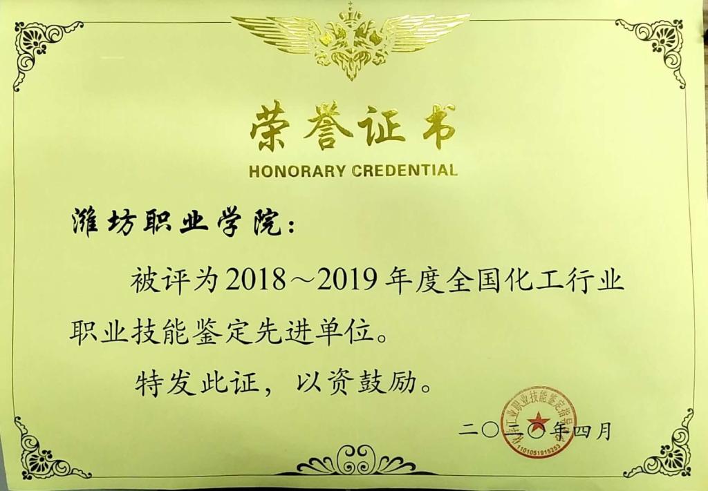 近日,国家化学工业职业技能鉴定指导中心发布2018-2019年度鉴定先进单位和先进个人表彰文件,必赢化工行业特有工种职业技能鉴定站荣获全国化工行业职业技能鉴定先进单位,邹芳、张新文两位教师被评为全国化工行业职业技能鉴定工作先进个人。
