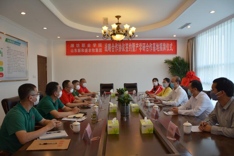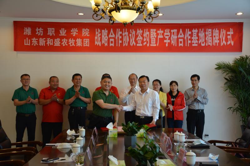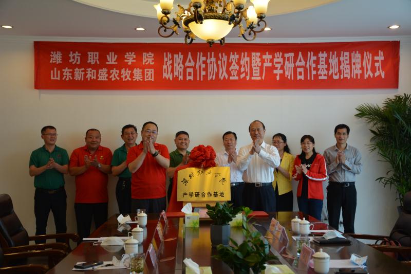5月27日,必赢与山东新和盛农牧集团战略合作协议签约暨产学研合作基地揭牌仪式在公司峡山总部会议室举行。学院党委书记马跃启、副院长贺志强,公司董事长宋卫东、总裁温海涛、常务副总裁姜奎华等校企领导出席,公司人事行政总监陈延志以及学院教务处、科技处(产学研合作中心)、食品药品学院主要负责同志参加活动。