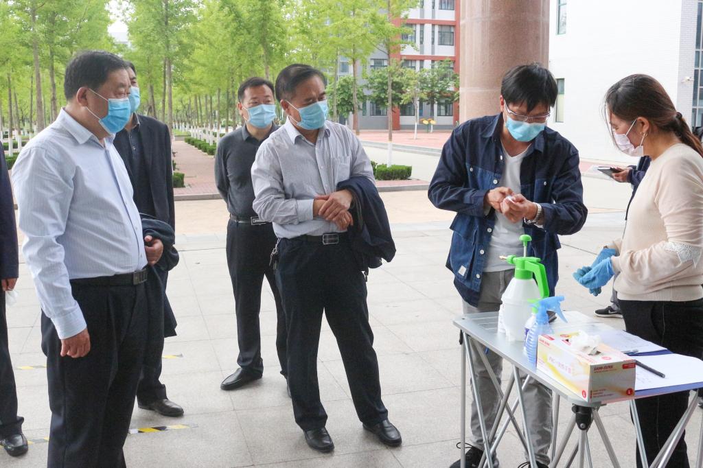 5月15日上午,学院领导宋桂言、贺志强、李瑞昌、郭晓辉现场查看滨海校区2020年春季学期开学准备工作,办公室、宣传部、安全保卫处、学生工作处、教务处、后勤服务处等有关部门负责同志参加检查。