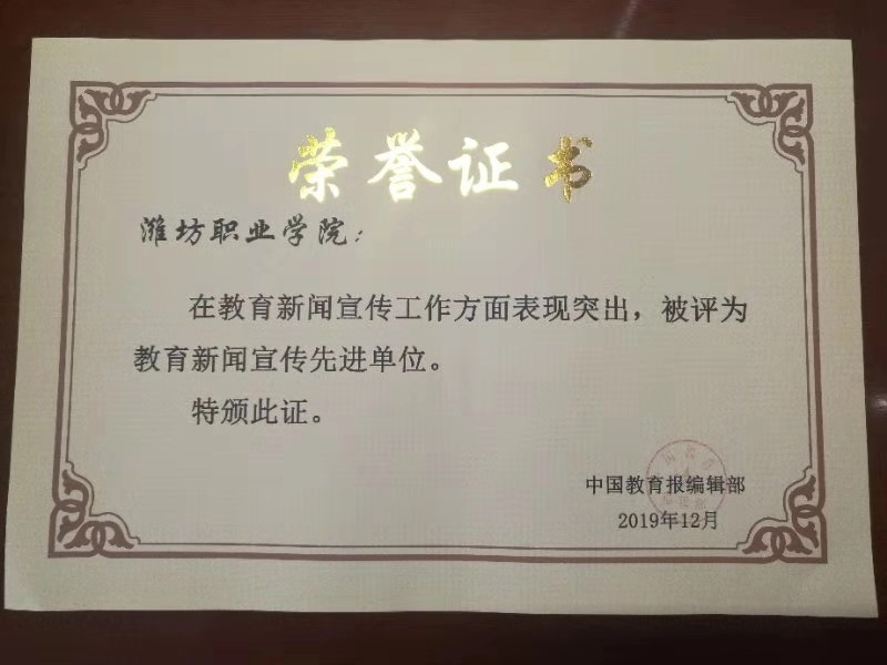 2019年,宣传部在学院党委行政领导下,认真宣传贯彻习近平新时代中国特色社会主义思想和党的十九大精神,深入贯彻落实全国宣传思想工作会议精神和全国教育大会精神,落实省教育厅信息工作有关要求,牢牢把握正确舆论导向,坚持举旗帜、聚民心、育新人、兴文化、展形象,坚持传统媒体与新媒体融合发展、同频共振,坚持周密策划、精心选题、挖掘亮点,积极拓展包括中国教育报在内的中央及省级以上外宣渠道,大力宣传学院改革发展成果。自优质校创建以来,学院在外部媒体发表新闻稿件470余篇,为学院事业发展营造了良好舆论氛围,学院社会影响力和美誉度得到扩大提升。