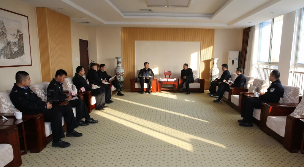 11月26日下午,潍坊市滨海经济开发区公安分局局长郭光才、副局长王国智、国保大队长李宪军等一行7人来必赢调研指导安全与维稳工作。学院党委副书记宋桂言主持座谈会,安全保卫处主要负责同志参加。