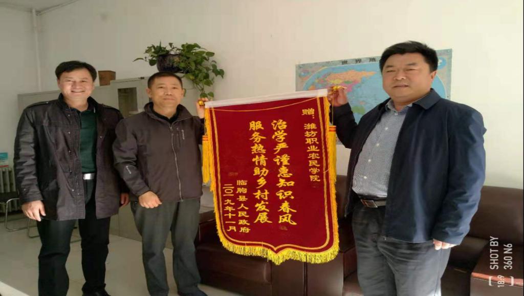 11月13日,临朐县文化和旅游局相关领导代表临朐县人民政府来到76net必赢官网继续教育学院赠送锦旗,向必赢的职业农民培训工作表达敬意和感谢。