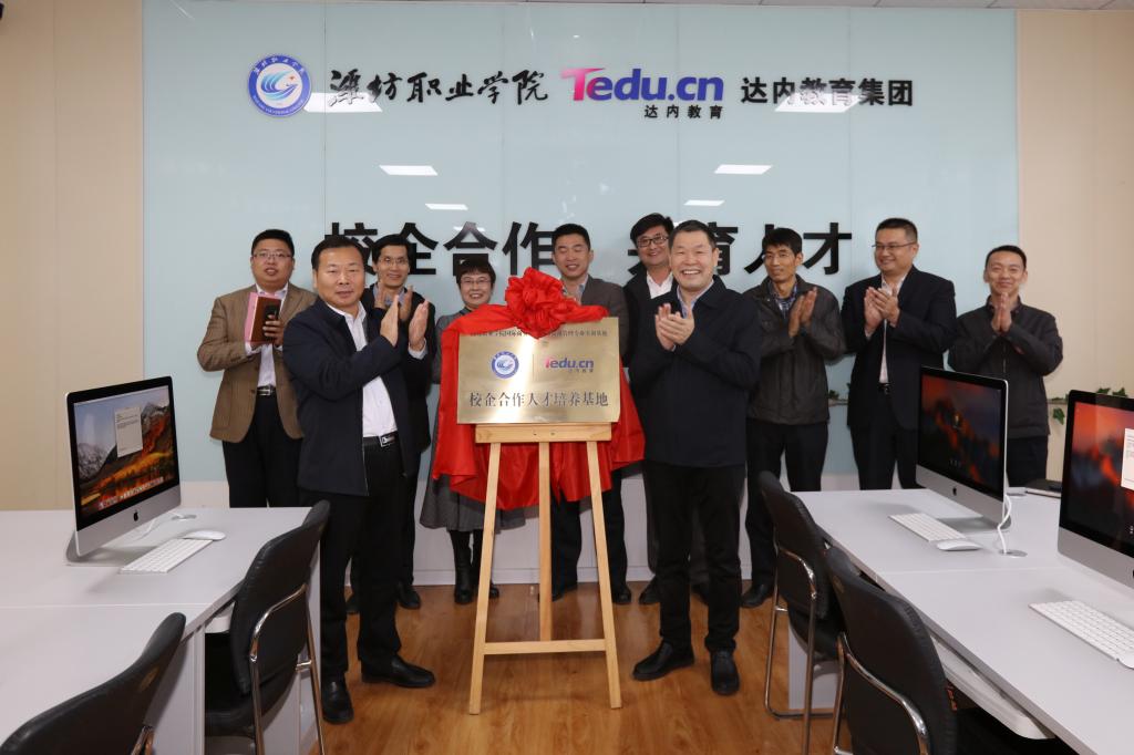 为深入推进产教融合、校企合作,11月13日下午,学院在奎文校区举行与达内时代科技集团校企共建项目验收会暨校企合作人才培养基地揭牌仪式。学院副院长贺志强,招生就业处、科技处(产学研合作中心)、资产管理处、教务处、国际商务学院主要负责同志及部分教师代表参加。达内时代科技集团院校事业部北方区总经理、专业共建全国总经理侯增辉,达内时代科技集团院校事业部北方区副总经理,以及达内时代科技集团山东基地总经理徐勇,参加此次验收会暨揭牌仪式。