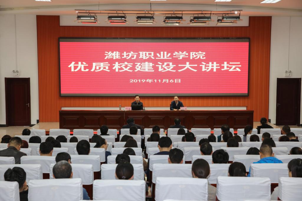 11月6日,“优质校建设大讲坛”第十六讲在滨海校区清泽楼报告厅举行,山东省现代学徒制工作专家指导委员会副主任兼秘书长、烟台市职业教育研究室主任段威作了“探索具有特色的现代学徒制之路”专题报告。院长王家爱,副院长贺志强、李瑞昌出席报告会。二级学院、相关部门负责人,教研室主任、骨干教师代表及优质校建设办公室全体成员200余人参加报告会。李瑞昌主持报告会。