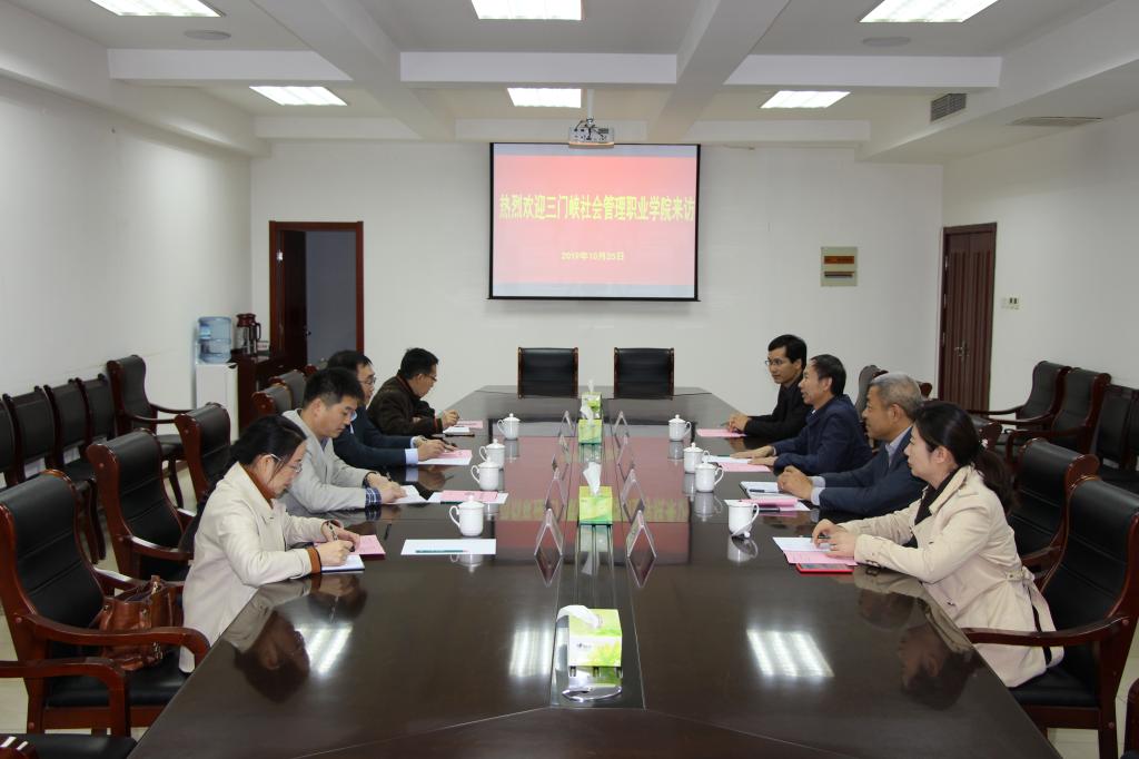10月25日,三门峡社会管理职业学院党委副书记赵进卿一行4人来必赢就混合所有制办学情况考察交流。学院副院长李瑞昌在奎文校区会议室会见客人,科技处、现代服务业学院负责同志参加座谈。
