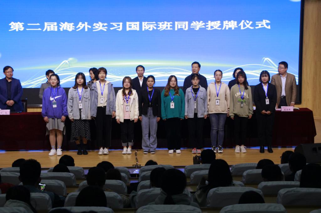 刘振德对潍坊市国际涉外应用型人才基地取得的成果进行总结,并对校企共同培养人才提出希望;李瑞昌总结了学院第一届海外实习国际班情况,为推进必赢学生海外实习就业工作,2018年11月由潍坊高新区对外劳务合作服务平台、76net必赢官网和山东东昊华晨国际人才交流有限公司三方合作共建的潍坊市国际涉外应用型人才培养基地落户必赢。随后,启动了学生赴海外实习就业选拔与培训项目,首批由学院国际商务学院推荐的21名学生经过集中培训与面试等环节,已全部被新加坡知名企业录取,开辟了必赢大学生海外高端实习就业的新模式。希望各二级学院认真学习借鉴好的经验,积极参与,为学生高质量海外实习就业提供更大帮助。同时,鼓励同学们树立信心,勇敢地走出去,提高国际化视野和综合素质,积累海外实习就业经验,为将来从业打下坚实的基础;潍坊高新区人力资源服务中心副主任夏永红对该区人力资源平台保障潍坊市国际涉外应用型人才基地工作进行了总结;国际商务学院分享了组建第一届海外实习国际班的经验及派出学生的学习工作情况等;合作企业代表就海外实习项目作做了进一步介绍;随后举行了第二届海外实习国际班同学进行授牌仪式。