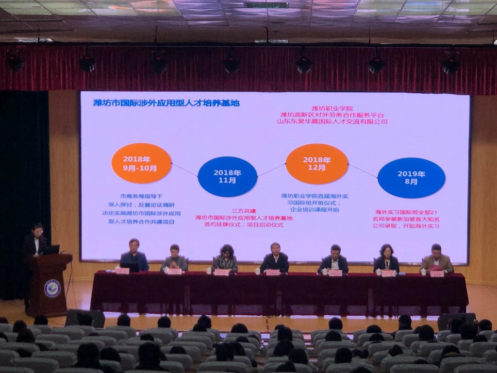 10月24日下午,学院学生海外实习就业工作推进会暨第二届海外实习项目启动仪式在奎文校区16号楼报告厅举行。市商务局党委副书记刘振德,学院副院长李瑞昌出席会议,高新区人力资源服务中心、山东东昊华晨国际人才交流有限公司、学院相关部门、二级学院负责人及师生代表300余人参加了活动。