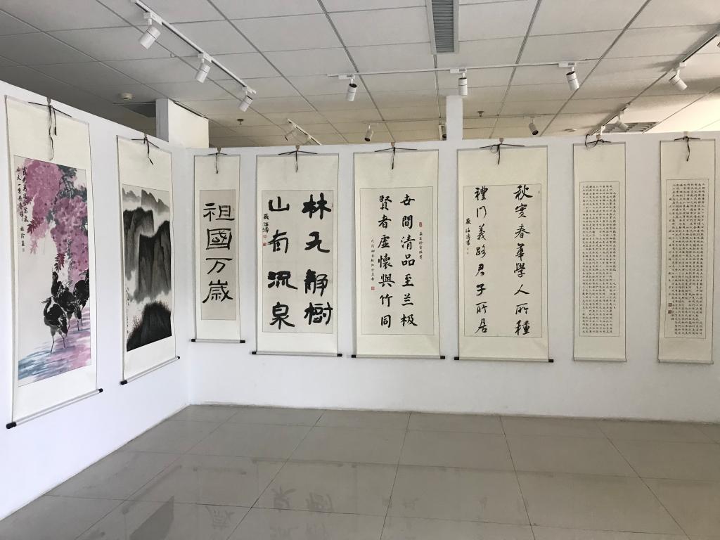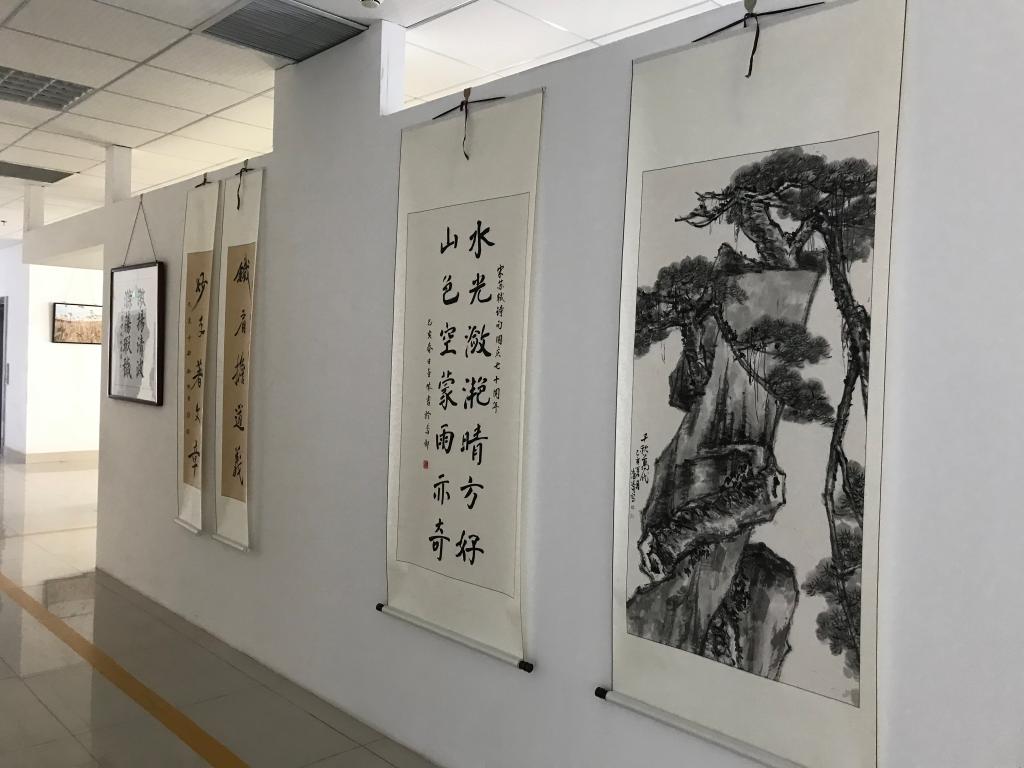 10月8日,学院“喜庆70华诞 建功新时代”教职工书法、绘画、摄影展在滨海校区图书馆三楼艺术中心开展。
