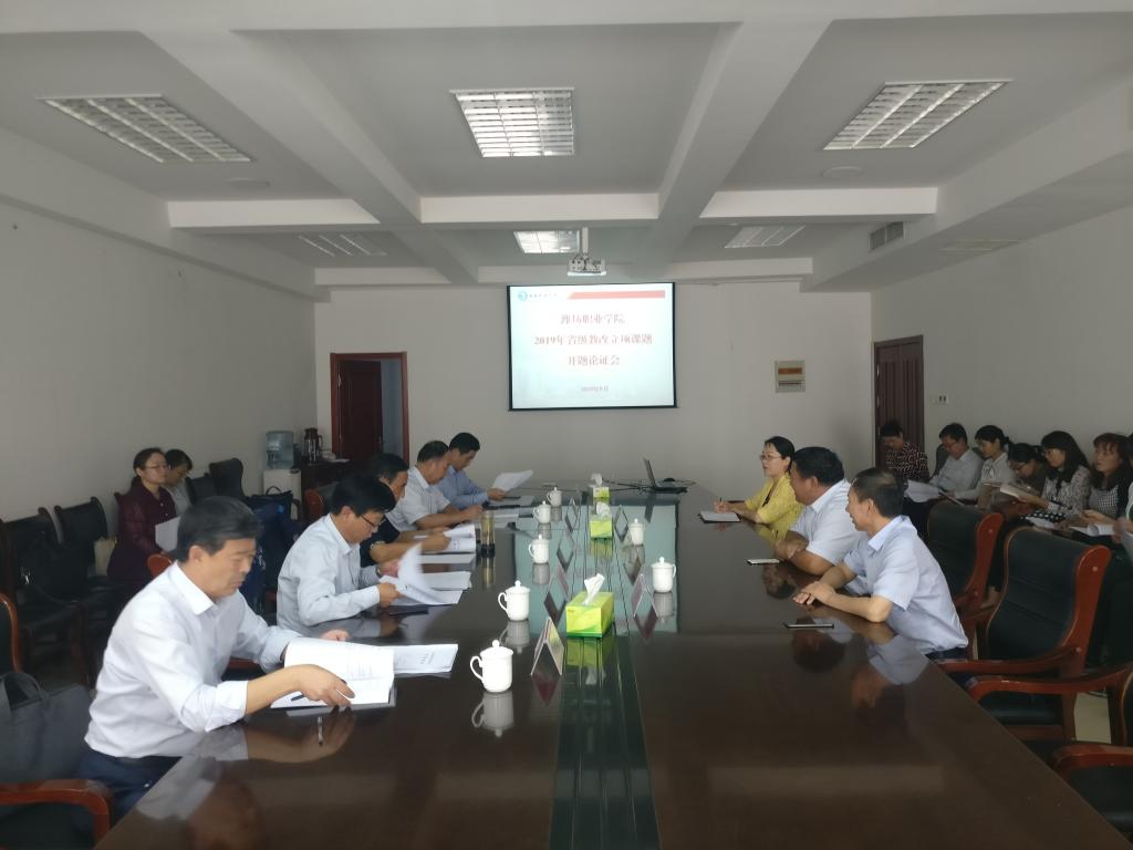 9月21日,根据山东省教育厅《关于公布2019年度山东省职业教育教学改革研究立项项目的通知》要求,必赢组织了以王汉忠教授为组长的专家论证组,对2019年立项的11项山东省职业教育教学改革研究项目进行开题论证。院长王家爱、副院长李瑞昌参加了论证会,各项目组成员、教务处相关人员参加了会议。