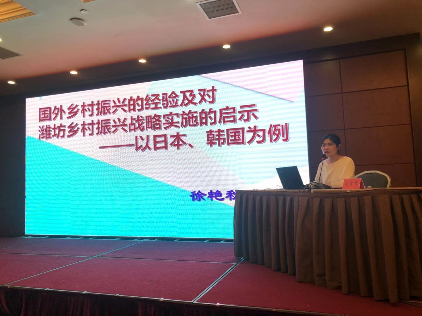 在专家交流环节,徐艳秋博士作了“国外乡村振兴的经验及对潍坊乡村振兴战略实施的启示——以日本、韩国为例”专题发言,梳理了日本和韩国乡村发展的经验,深入对比研究中日韩乡村发展的历程,辩证的分析了日韩乡村发展对潍坊乡村振兴战略实施的启示,其中以潍坊职业农民学院为典型案例阐释了潍坊乡村振兴过程中培育新型职业农民和乡村振兴带头人的重要意义,受到与会专家和领导的高度评价。