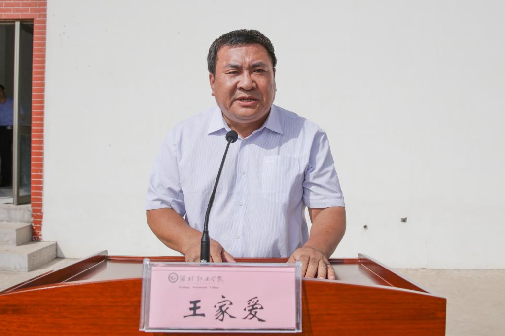 王家爱代表学院党委、行政和全体师生员工向2019级新同学表示热烈欢迎,向全体新生介绍有着60多年办学历史的潍坊职院,全面落实“立德树人”根本任务,坚持“面向市场、服务发展、促进就业”的办学方向,已发展成为全国优质高等职业院校和全国“教学资源50强”“服务贡献50强”“国际影响力50强”“综合竞争力100强”高职院校。特别是近几年,学院深入实施“产教融合、学岗融通”人才培养模式,校企共建产业学院、共建专业,先后与800余家企业建立了长期稳固的合作关系;大力推进国家现代学徒制、省混合所有制项目试点,校企合作“双元”育人成效显著,“三融合一对接”办学特色更加鲜明;大力推进质量工程实施,入选山东省首批学分制管理试点高职院校;学生在各级各类职业技能大赛和创新创业大赛中争金夺银,其中国赛荣获奖牌78枚,特别是今年国赛一举夺得5金7银1铜的优异成绩,金牌数量和获奖总数列全省高职院校第1位,获评“中国创新创业典型示范基地”;加强学生管理教育和服务,广泛开展主题教育活动,大力实施大学生人文素养提升工程,引导学生提升科学、人文素养和劳动意识、实践能力,4名学生荣获“山东省高校十大优秀学生”称号,学院获评“山东省征兵工作先进单位”;构建全方位、多元化资助体系和就业指导体系,近三年毕业生就业率一直保持在99%以上,倍受用人单位青睐和欢迎。