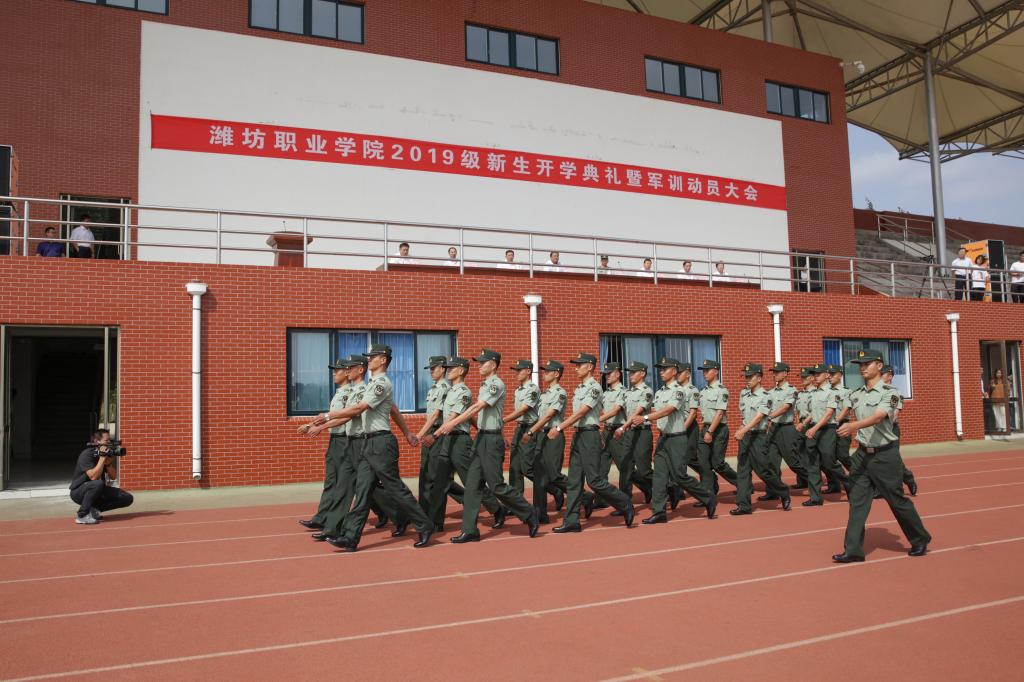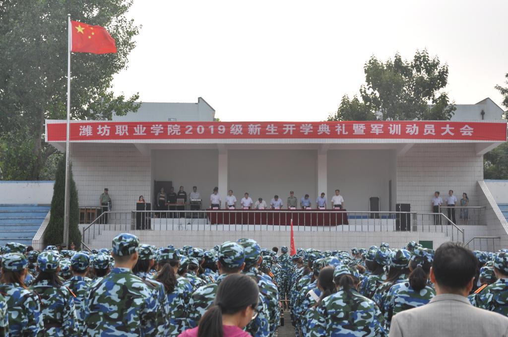 金秋九月,丹桂飘香。9月16日上午,学院2019级新生开学典礼暨军训动员大会分别在奎文、滨海校区体育场隆重举行。学院院长王家爱,驻潍某部指导员李芊呈、刘卓,党委副书记宋桂言,学院领导赵君堂,副院长贺志强、李瑞昌,纪委书记郭晓辉,副院长谭明、刘德强等出席并在主席台就坐。学院有关部门和二级学院负责人、辅导员、班主任以及全体新生参加了大会。大会由宋桂言主持。