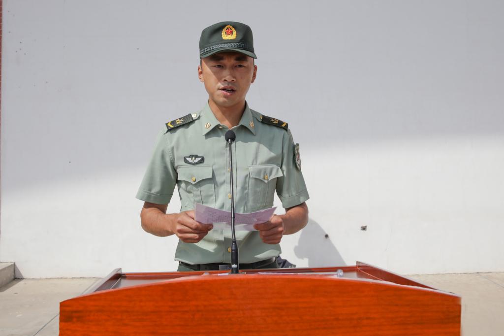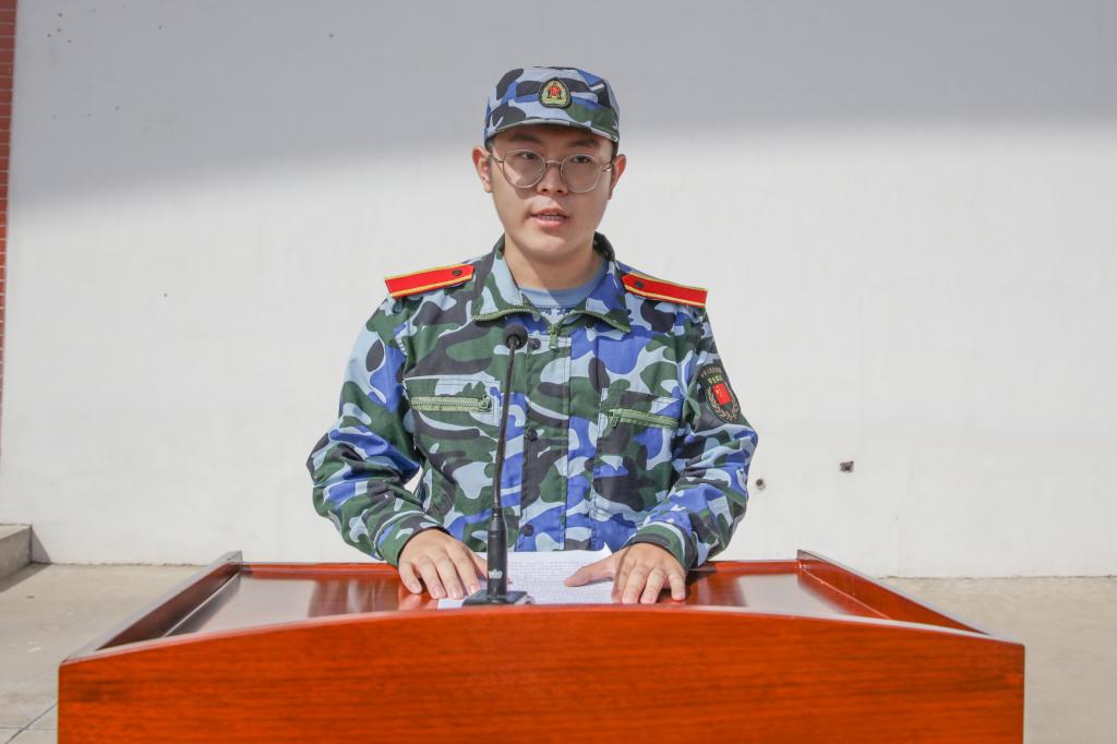 刘德强宣读了《关于表彰2019级优秀新生的决定》。军训教官代表、教师代表和新生代表发言。军训教官进行了精彩的军事队列动作示范表演,赢得了同学们的阵阵掌声和喝彩。