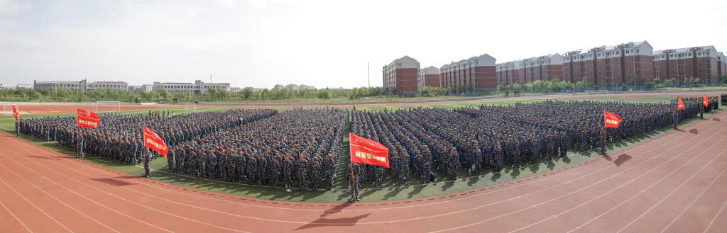 大会结束,军训团团长宣布军训团任职令,2019级新生以昂扬的斗志、饱满的热情投入到为期两周的军训教育。(葛树强供稿)