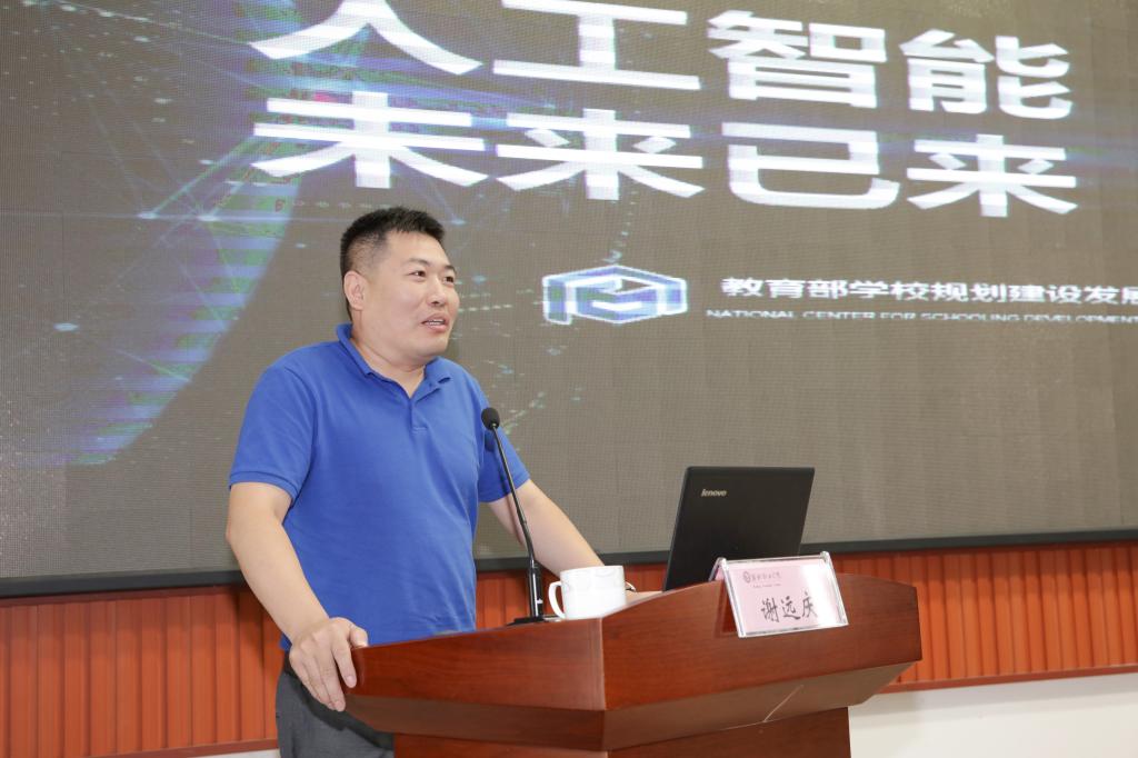 达内时代科技集团副总裁郭陟从集团产值、员工规模、业务覆盖范围、合作院校与企业等方面介绍了公司的基本情况。从慧时代、新人才、全体系、真项目、高创新、强就业、大生态等方面对共建产业学院的产业背景、人才培养模式、人才培养方案、创新创业平台以及就业面向和前景进行了全面系统的讲解。达内时代科技集团AI项目部总经理谢远庆介绍了教育部“AI+智慧学习”共建人工智能学院情况。