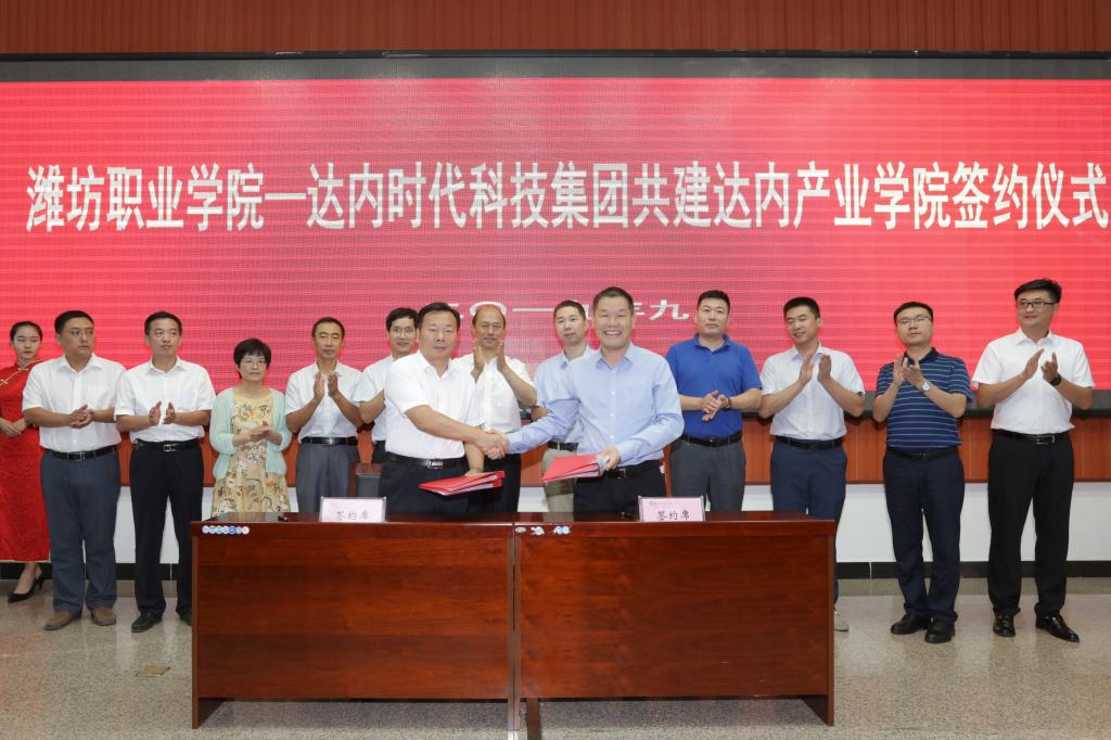 贺志强与侯增辉代表双方正式签署了共建达内产业学院合作协议。