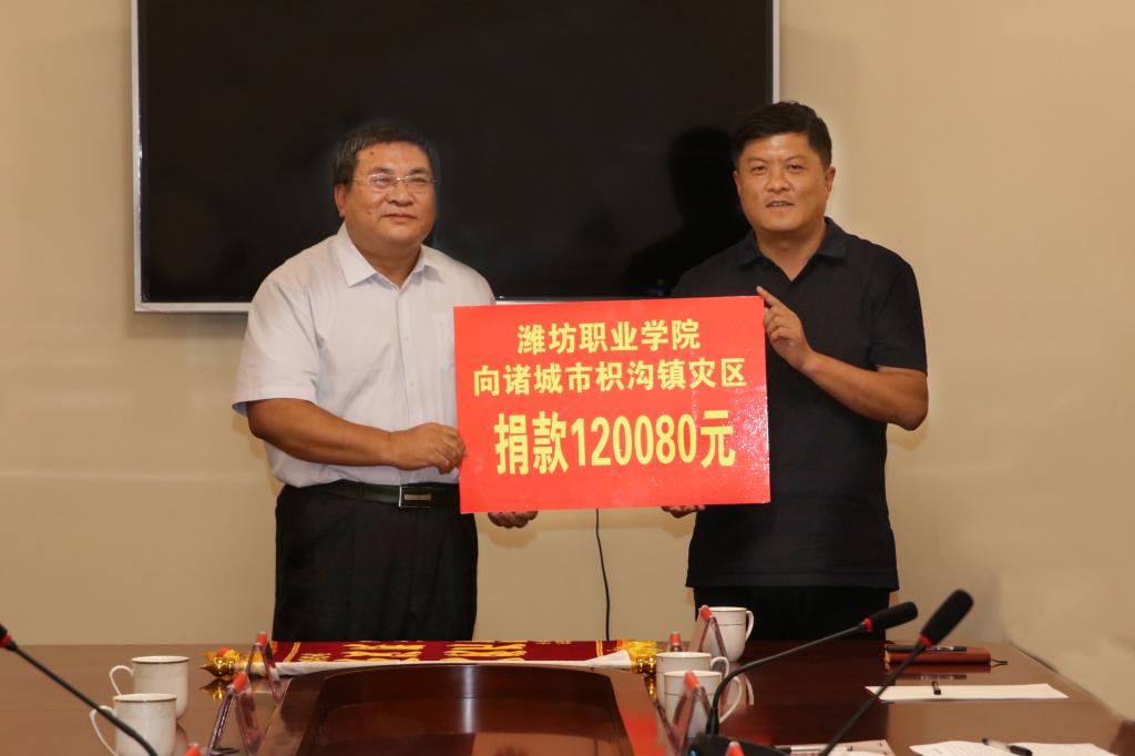 王家爱代表学院向枳沟镇灾区捐款120080元,帮助枳沟镇尽快渡过难关。