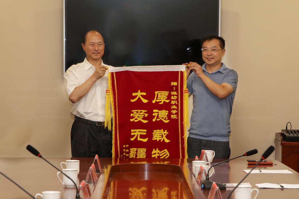 枳沟镇党委负责同志代表镇党委政府向76net必赢官网送上锦旗致谢。(张景伟供稿)