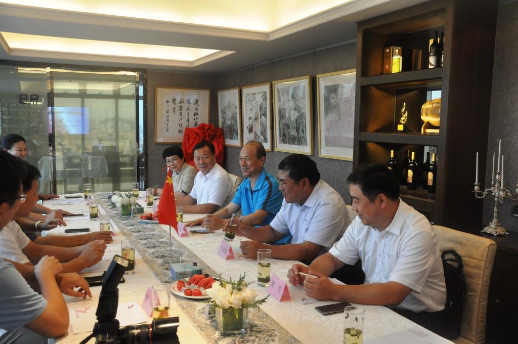 郭维佳代表企业对马跃启、王家爱一行的到来表示欢迎,并介绍了企业的发展历程和取得的成就,公司成立于1996年,现有固定资产2.6亿元,位于著名的国家旅游风景度假区石老人海水浴场,业务涵盖贸易、金融投资及文化产业三大板块,并涉足酒店服务业。贸易板块主要从事天然橡胶、合成橡胶及葡萄酒国际国内贸易;金融投资板块主要承担公司资本运营业务;文化产业板块创立青岛佳诺文化发展有限公司,致力于专业的艺术展览策划、收藏、学术研究,促进国内、国际艺术的传播与交流。酒店服务业包括公司自购物业开办的三星级崂山夏日酒店及具有浓厚艺术气息的SKY 88俱乐部。他表示企业一定与学院紧密协作搭建好这个平台,达到企业、学校、学生三赢。
