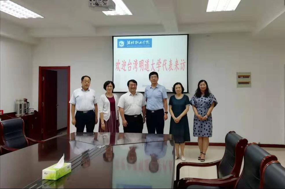 8月2日,海峡两岸教育交流促进协会秘书长兼明道大学校务发展顾问路蕙鸿女士与明道大学国际事务处国际长萧雅柏先生在潍坊市鲁台教育交流中心刘天铎主任陪同下访问必赢,刘德强副院长在奎文校区接待了客人,对台湾合作交流办公室相关负责同志参加座谈交流。