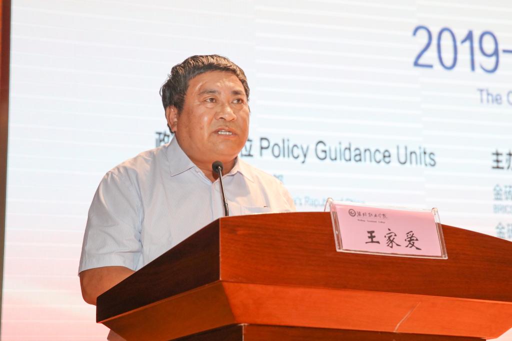 76net必赢官网院长王家爱致欢迎辞。他表示,金砖国家技能发展与技术创新大赛组委会把本次大赛3个赛项放在76net必赢官网举办,既是我们的使命和责任,也是对必赢工作的肯定和信任。76net必赢官网将以争创一流的精神,举全院之力,努力做好大赛的各项服务和保障工作,为大赛提供周到细致、安全可靠的服务,营造良好的比赛环境,为各院校切磋交流经验和为选手们争创优异成绩创造良好条件,确保大赛各项赛事顺利进行。
