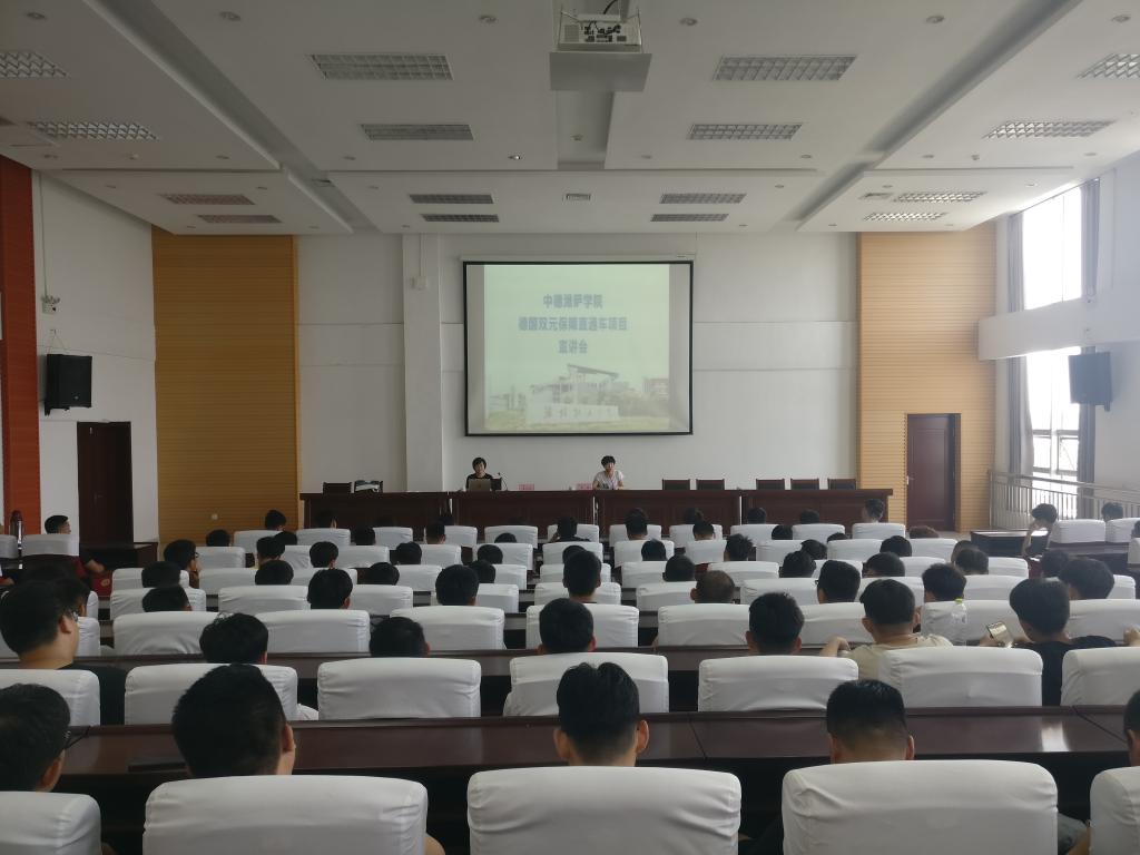 6月25日上午,中德潍萨学院在清泽楼413报告厅举行德国双元保障直通车项目宣讲会。德国WMU教育集团大中华区首席代表曹大治、中德潍萨学院工作小组负责人,机电工程学院100多名学生参加会议。