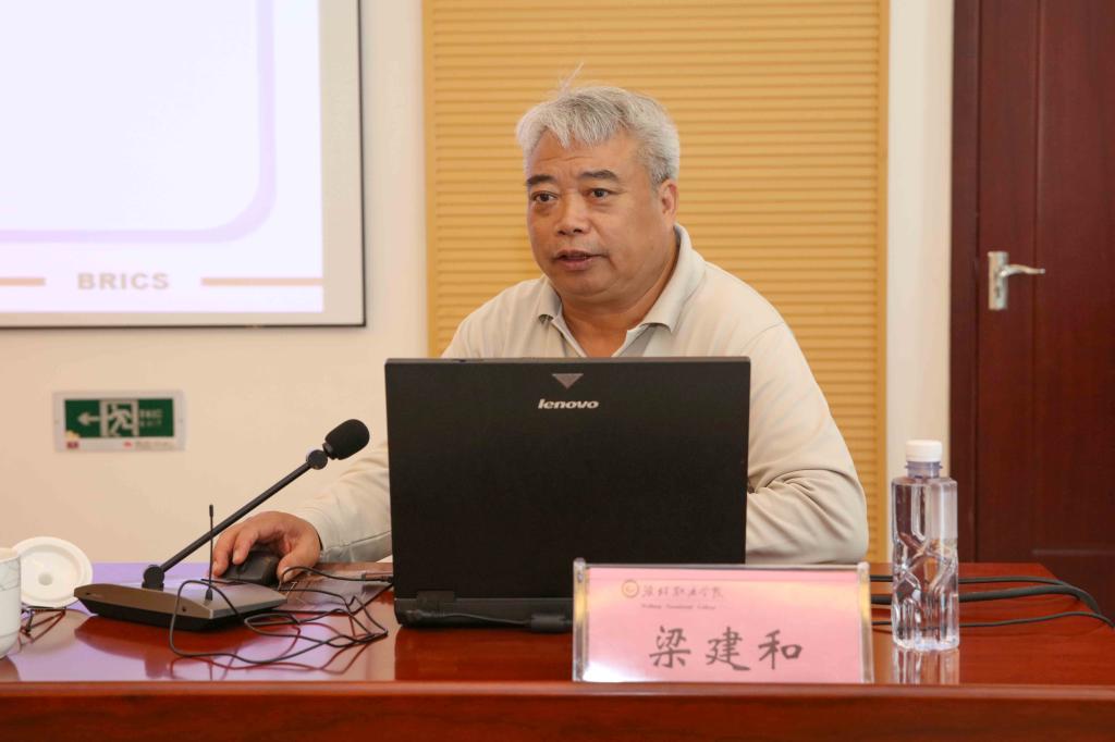 6月5日-6月6日上午,2019“一带一路”暨金砖国家技能发展与技术创新大赛综合职业能力测试模块裁判员培训会在必赢清泽楼312会议室召开。北京师范大学赵志群教授,一带一路暨金砖国家技能发展国际联盟副理事长、北京企学研教育科技研究院院长刘辉,一带一路暨金砖国家技能发展与技术创新大赛技术委员会副主任、广西机械工程学会副理事长梁建和教授,学院院长王家爱,副院长李瑞昌,教务处、机电工程学院主要负责同志及专家、裁判人员、教师、企业代表50余人参加了会议并进行了研讨。