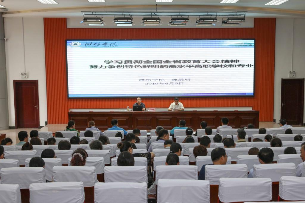 为深入学习贯彻落实习近平总书记关于教育的重要论述和全国、全省教育大会精神,6月5日下午,学院在滨海校区明德讲堂举办深入学习贯彻全国全省教育大会精神讲座,全国教育大会精神“山东宣讲团”成员、潍坊学院魏晨明教授作专题报告。各部门副科级干部、骨干教师党员共200余人参加报告会。