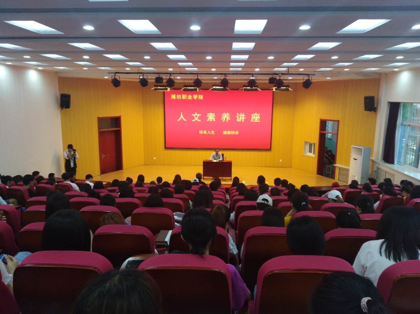 5月16日,学院第39场人文素养讲座在奎文校区创业中心报告厅举办,文化创意学院党支部书记张玉鹏为同学们作了一场体育健身专题讲座,奎文200名学生参会听讲。