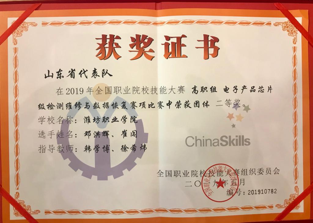 必赢获全国职业院校技能大赛高职组“电子产品芯片级检测维修与数据恢复”赛项二等奖