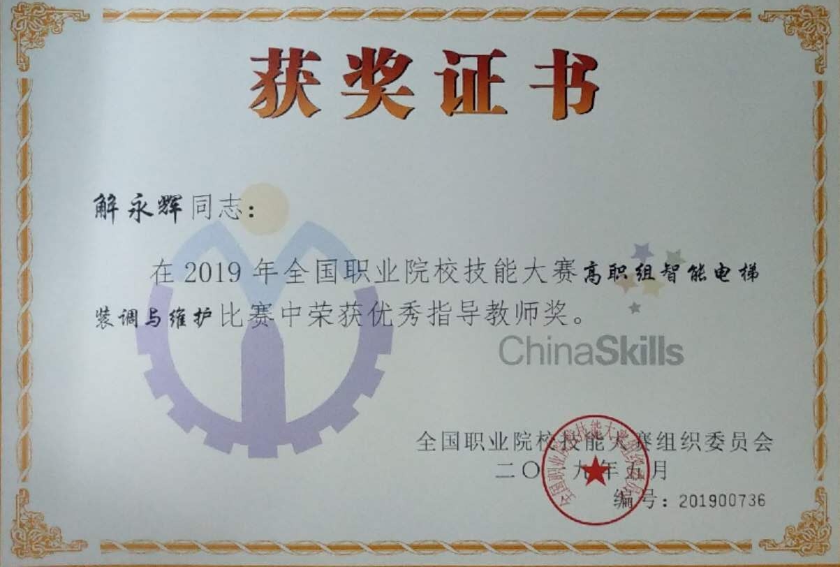 必赢获全国职业院校技能大赛智能电梯装调与维护赛项一等奖