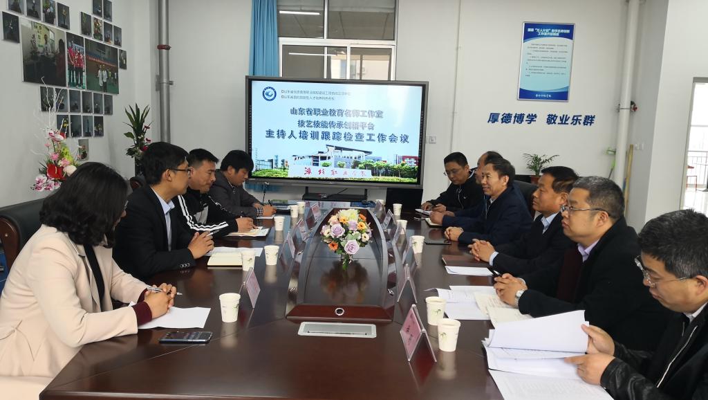 4月26日,受山东省教育厅委托,山东省职业教育师资培训中心检查组组长孙贤明一行4人来必赢对必赢省级名师工作室和技艺技能传承创新平台建设情况进行检查调研。学院副院长李瑞昌参加座谈交流,各省级名师工作室和技艺技能传承创新平台负责人,教务处相关人员参加活动。