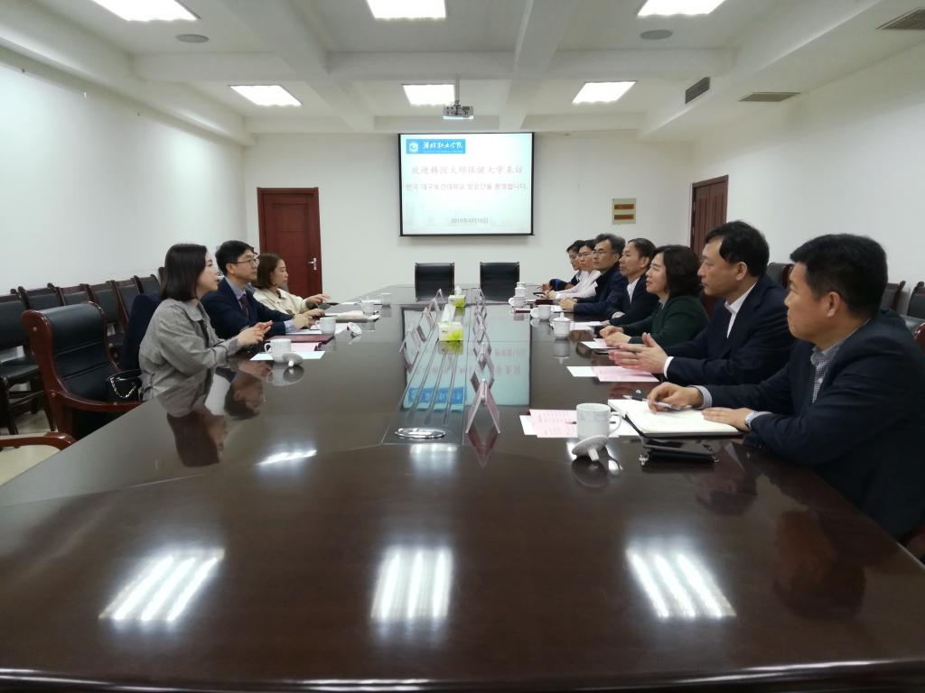 4月18,韩国大邱保健大学国际交流院长金敬荣等一行4人到必赢访问,李瑞昌副院长在奎文校区接待了客人,国际交流与合作处、食品药品学院、国际商务学院、现代服务业学院和化学工程学院相关负责同志参加座谈交流。