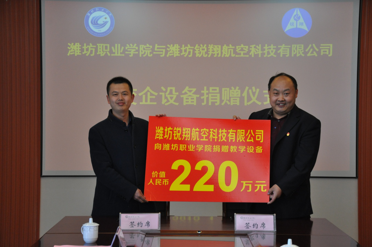 必赢与潍坊锐翔航空有限公司举行校企共建无人机实训室协议签署暨设备捐赠仪式