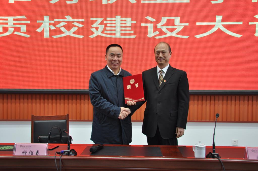 为进一步提升全院教职工的信息化教育教学理念,加快学院优质校建设,3月26日上午,学院邀请全国信息化建设著名教育专家--东北师范大学教授、博士生导师钟绍春教授,在清泽楼报告厅作了《构建信息时代学校办学新模式》的报告。同时举行特聘钟绍春教授为学院“客座教授”的聘任仪式,学院党委书记马跃启为钟绍春教授颁发聘任证书。报告会由学院副院长李瑞昌主持。相关部门负责同志以及二级学院的骨干教师参加了报告会。