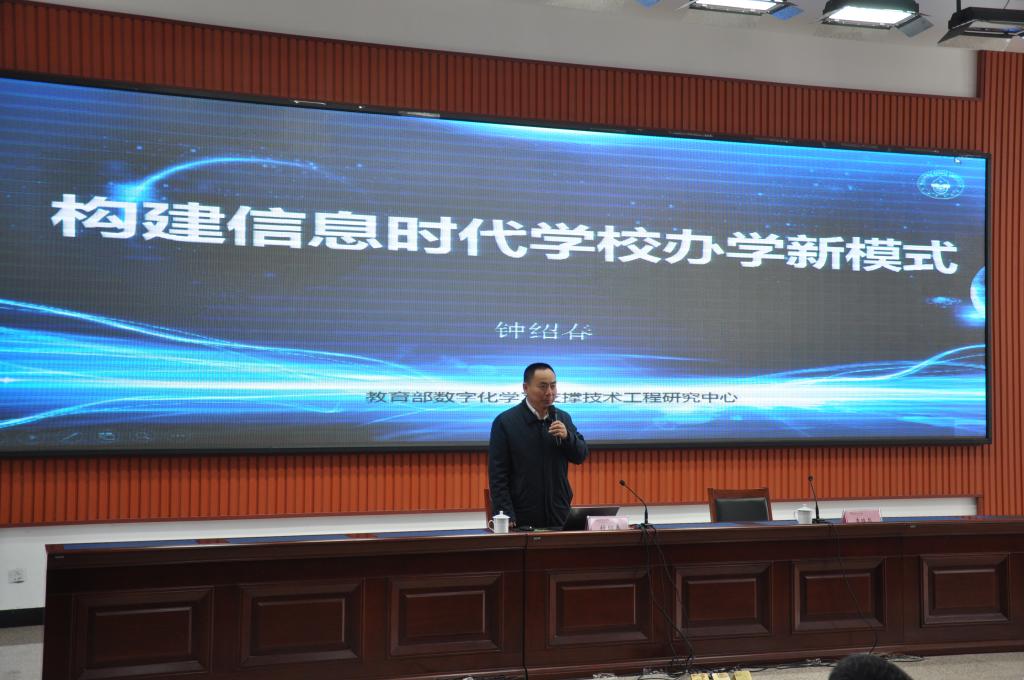 会上,钟绍春教授从信息时代学校创新发展的方向与思路、“互联网+”支持高质量人才培养的有效途径、人工智能提升学校管理水平的主要途径、智慧校园建设与应用的重点内容四个方面对问题进行了深入的阐述,为学院信息化建设提出了合理化建议。