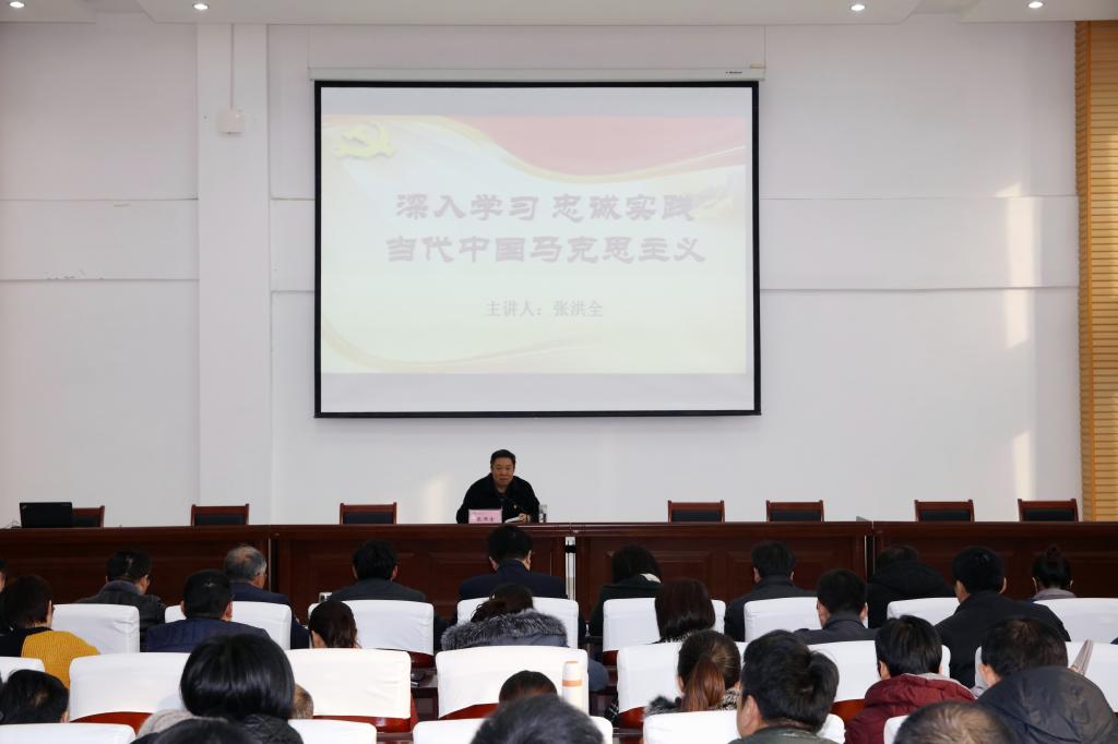 12月6日,学院党委书记张洪全在学院党校讲《深入学习忠诚实践当代中国马克思主义》专题党课。办公室、宣传统战处、汽车工程学院、思想政治理论教学部党支部全体党员参加听课。