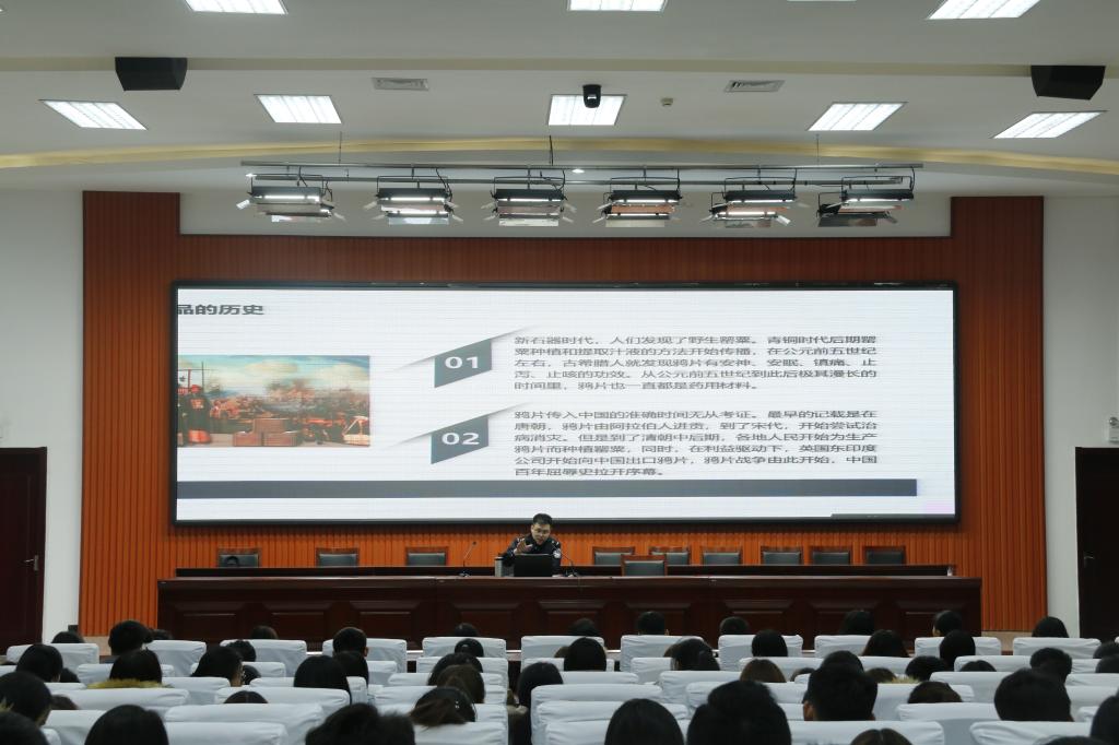 12月6日下午,学院在滨海校区清泽楼报告厅举办了禁毒知识讲座。讲座邀请滨海区公安分局禁毒大队于振中警官主讲,各二级学院师生代表共300余人参加。