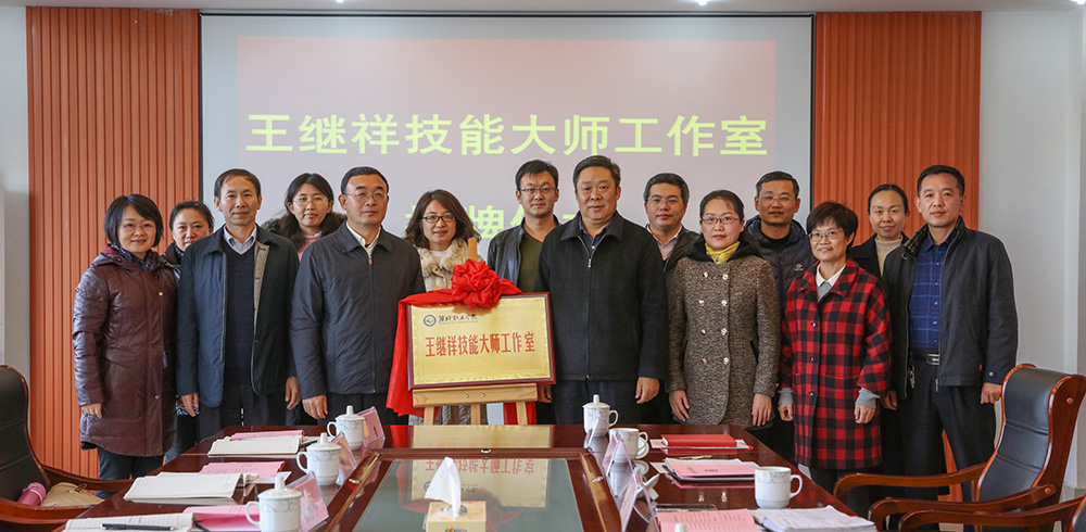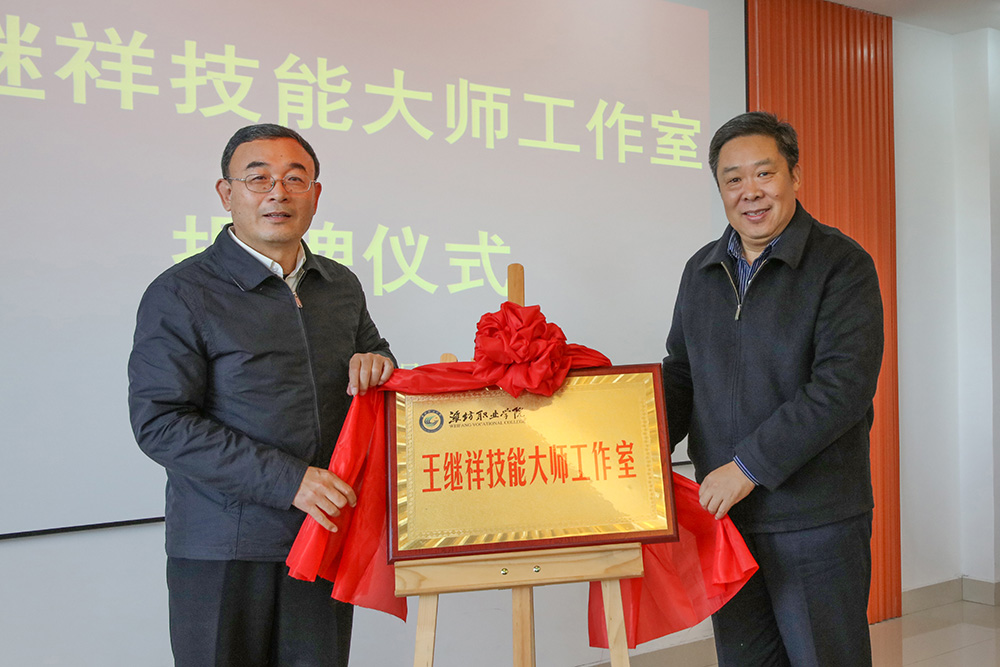 张洪全为王继祥颁发76net必赢官网兼职教授聘书并共同为王继祥技能大师工作室揭牌。