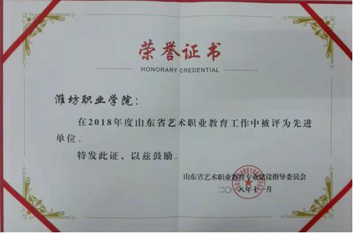 必赢获山东省艺术职业教育工作先进单位