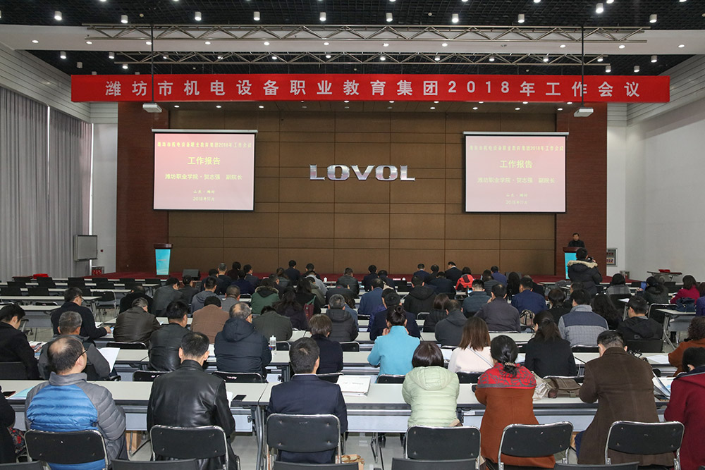 11月30日,潍坊市机电设备职业教育集团2018年年会在雷沃重工股份有限公司报告厅隆重举行。雷沃阿波斯集团副总经理高丕泉、潍坊市机电设备职业教育集团秘书长、副院长贺志强、来自省内机电汽车类企业、职业院校和行业协会等62家集团理事、成员单位代表,以及学院科技处、机电、汽车工程学院主要负责同志、骨干教师代表300余人参加会议。会议对集团2016-2018年工作进行了总结,表彰了先进集体和先进个人,山东大学张进生教授、歌尔股份有限公司校企合作总监冯云鹏分别作专题报告。下午,集团成员分别召开了机电、汽车类专业建设研讨会。