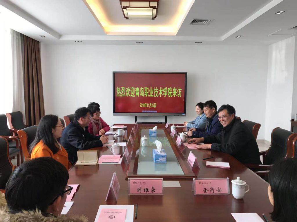 11月26日,青岛职业技术学院艺术学院副院长刘卫国一行7人到必赢参观交流,农林科技学院孙曰波及技能大赛指导教师参加了交流座谈。