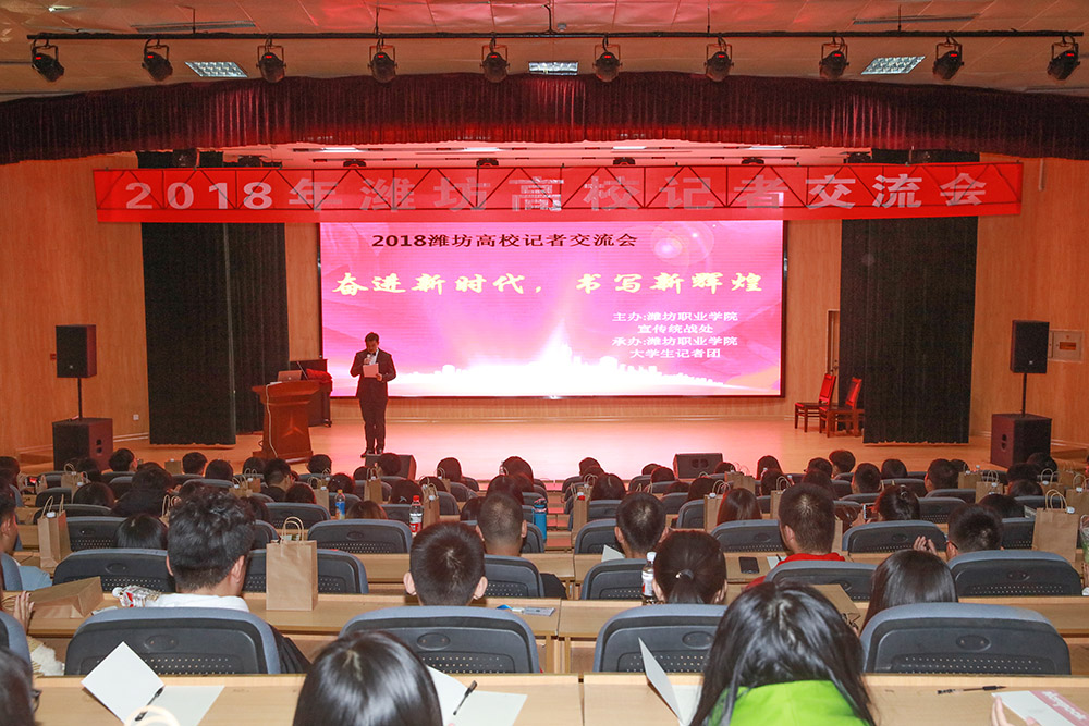 11月10日下午,驻潍高校大学生记者交流会在必赢奎文校区报告厅举行。学院宣传统战处、团委学生工作处相关负责同志,来自潍坊医学院、潍坊学院、山东交通职业学、山东科技职业学院、山东信息技术职业学院、山东经贸职业学院、山东畜牧兽医职业学院等院校大学生记者,以及必赢大学生记者团代表200余人参加会议。
